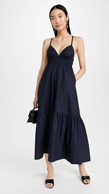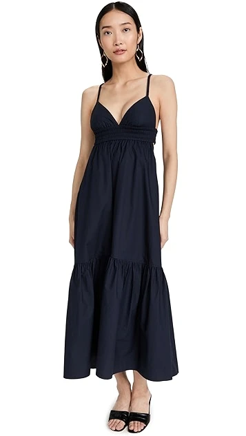 A cutout back brings an of-the-moment touch to this A.L.C. dress, which is cut from crisp cotton poplin and finishes a swingy midi silhouette with a flounced hem for added movement.