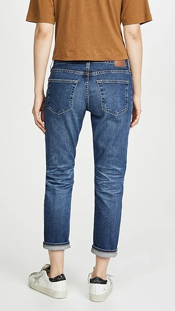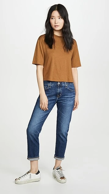 A slimmer take on boyfriend jeans from AG, cut from 11oz stretch denim and featuring a slouchy fit through the thigh that finishes with a subtle taper. Heavy fading and whiskering add a well-traveled finish to this pair.