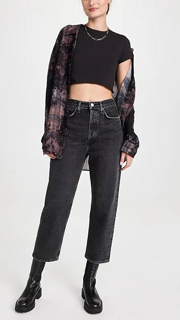 An understated approach to ’90s style, fresh from AGOLDE. These cropped jeans feature a fit that’s wide but not too slouchy, along with a subtle taper. Touches of distressing and heavy fading bring well-traveled appeal to the silhouette.