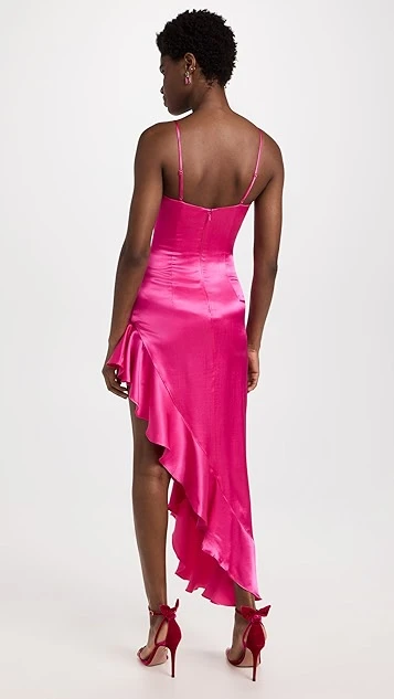 Striking asymmetry and vibrant color make this BARDOT mini dress an unmistakable special-occasion piece. A flounced hem and a surplice neckline add to the unique feel of the silhouette.