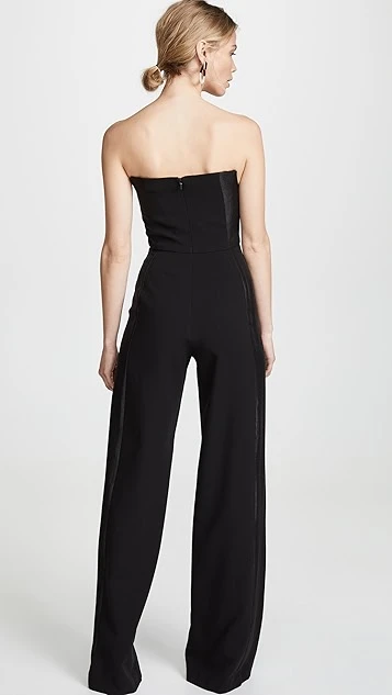 Sharply tailored and finished with glamorous, metallic side panels, this strapless Black Halo jumpsuit is ready to go toe-to-toe against your best cocktail dresses. Pair it with minimalist pumps to really let the style stand out.