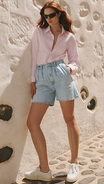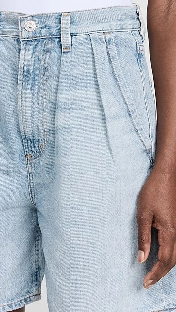 Spend your next warm weekend in these Citizens of Humanity jean shorts, which feature a longer inseam, a significantly faded wash, and a pleated high rise waist.