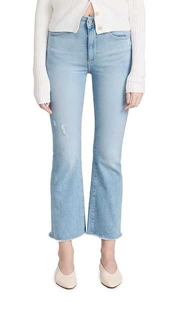 Super-stretch denim composes these everyday-friendly DL1961 jeans, which are heavily faded, minimally distressed, and finished with frayed, flared cuffs.