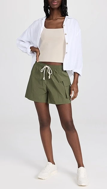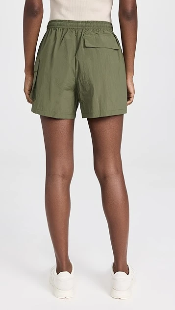 A sporty and weekend-ready pair of DONNI. shorts for your summertime wardrobe, crafted from crisp, dark-green nylon and outfitted with cargo pockets.