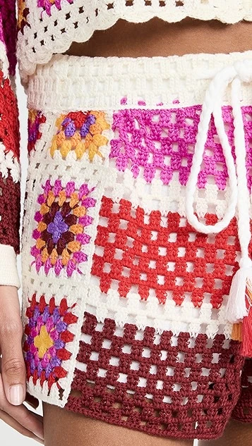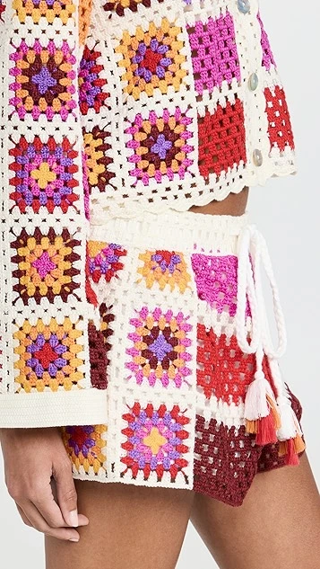 Vivid crochet patterning draws the eye to these charming FARM Rio shorts. Go for the full effect by adding the label’s matching shirt to the mix.
