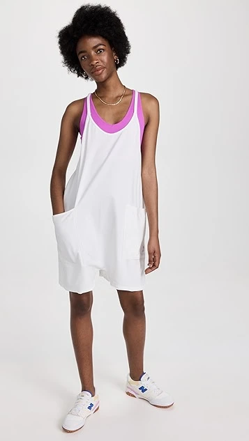 A soft and slouchy FP Movement by Free People romper, outfitted with convenient patch pockets in front. A faded patina and raw cuffs provide a deconstructed touch.