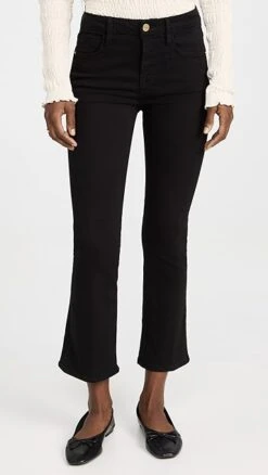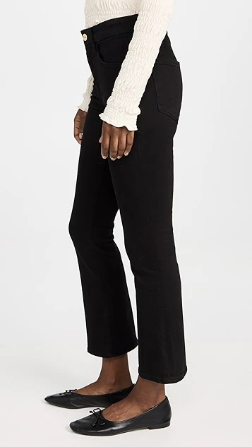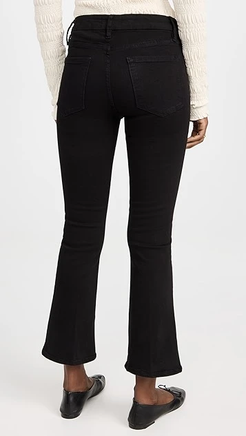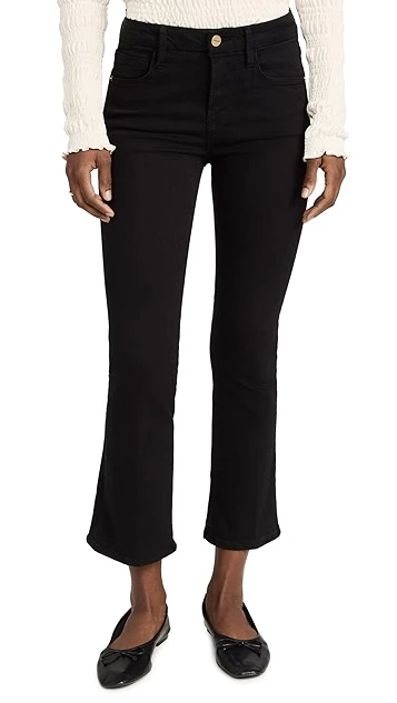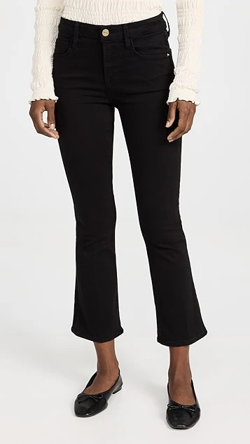 No-fuss denim with polished style is the name of the game with these FRAME jeans, which feature jet-black, super-stretch fabric and a subtle flare at the cropped hem.