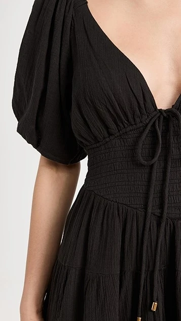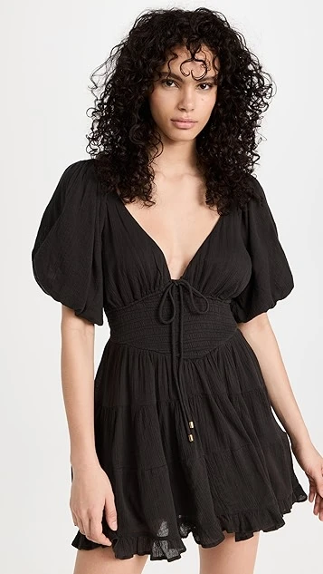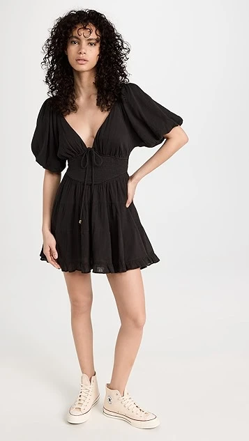 Spend a day to remember in this vividly colored Free People mini dress, which balances easy proportions with a fitted waist and a deep V neckline. Flat sandals will be a natural match for this piece.