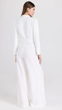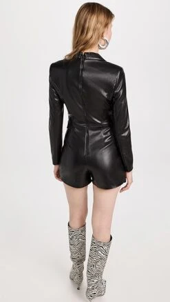Alice + Olivia Kyrie Faux Leather Notch Collar Tuxedo Romper