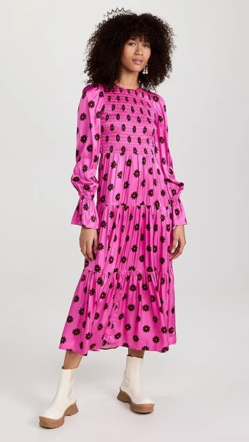 A vintage-inspired floral print, vivid color, and tidy pleats throughout the silhouette combine to make this KITRI Petra dress instantly distinct. We especially like this piece when it’s paired with white leather boots.
