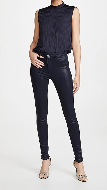 A sleek, eye-catching pair of L’AGENCE skinny jeans, finished with a leather-like coating and infused with plenty of stretch.
