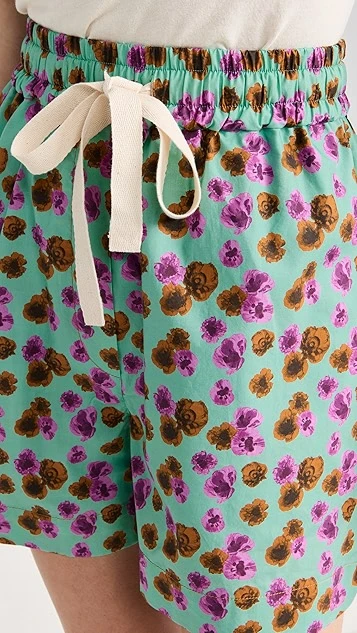 A charming pair of Lee Mathews shorts, featuring crisp fabric, a relaxed cut, and a smattering of illustrated flowers against a light background. Pair this piece with a monochrome tee or tank to complete your outfit.