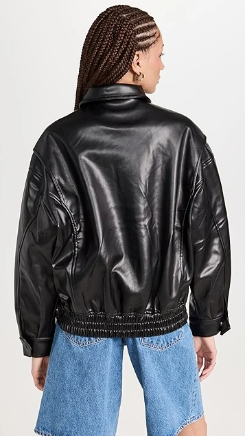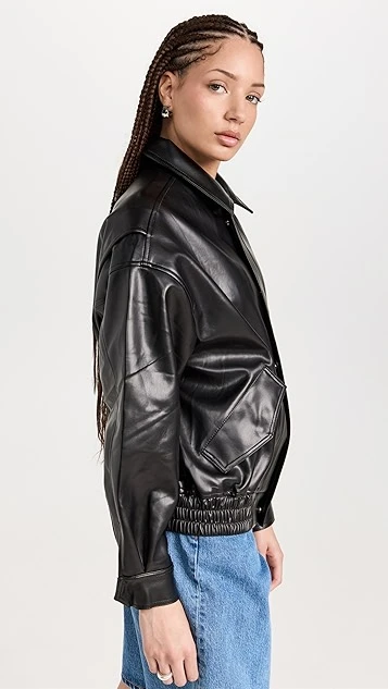 A timelessly stylish weekend layer, this Lioness bomber jacket is crafted from glossy black faux leather and is designed for a relaxed fit.