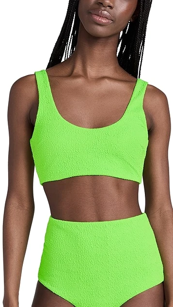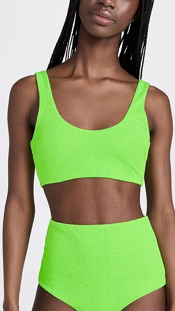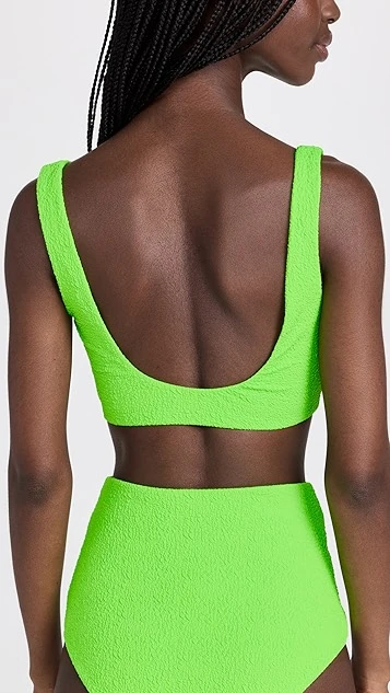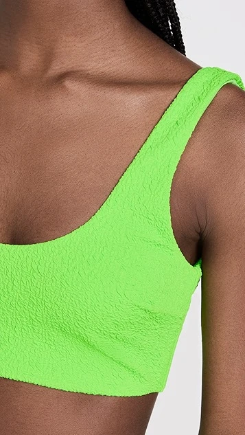 Sure to be a new sunny-day favorite, this MARA HOFFMAN bikini top features texture-rich fabric and an electric shade of green.