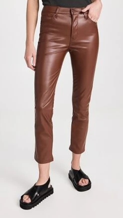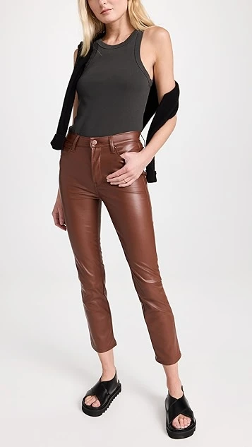 A cool alternative to your usual denim, these MOTHER jeans are cut from earth-tone faux leather and have the mid-rise ankle fit of the ever-popular Dazzler silhouette.