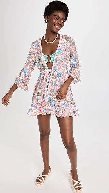 An instant sunny-day classic, this Playa Lucila kimono cover-up features lightweight fabric, classic floral patterning, and touches of lattice trim. Wear yours with flat sandals, and accessorize with a sun hat and straw tote.