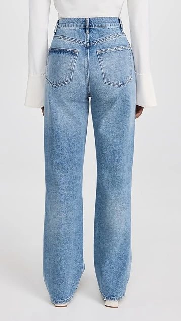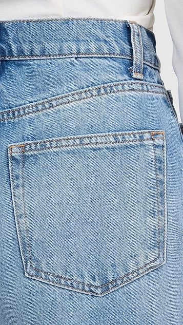 Keep your off-duty look casual in these cool Reformation Wilder jeans, which feature a heavily faded blue wash, a wide-leg cut, and a pair of shredded knee holes.