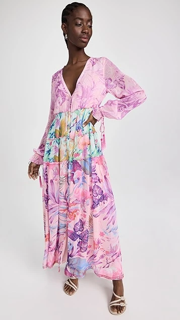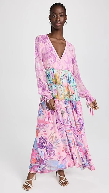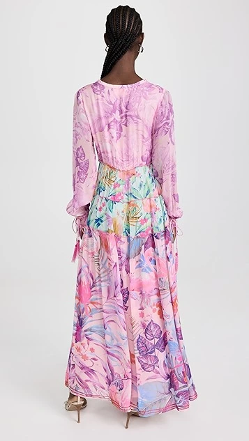 - Long sleeves with drawstring cuffs and beaded tassel ties
