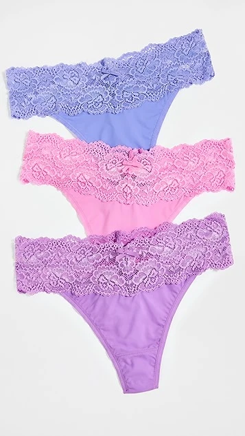 Smooth jersey and lavish lace combine to form this set of 3 mixed-hue Skarlett Blue thongs.