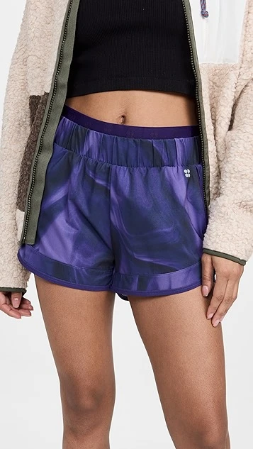 Practical and stylish in equal measure, these crisp Sweaty Betty running shorts feature a swirling abstract pattern, zip pockets, and a comfortable activewear jersey lining.