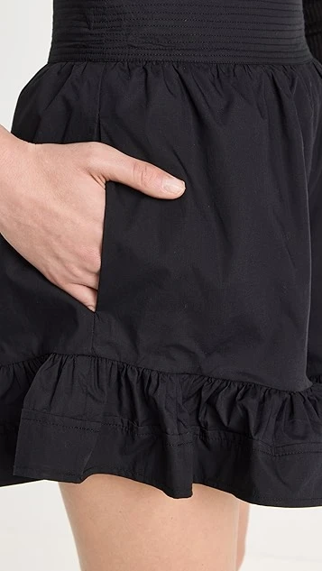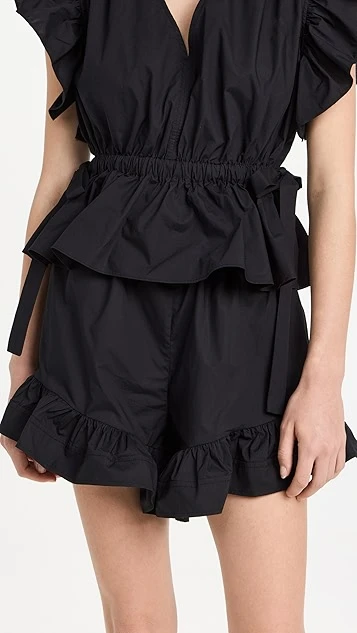 A charming pair of Ulla Johnson shorts, cut from crisp black poplin and accented with ruffles at the hem. Keep your look coordinated by pairing this piece with the label’s matching blouse.