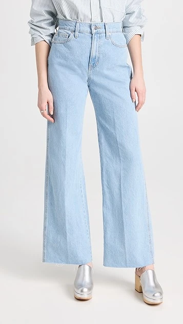 A picture-perfect take on wide-leg style, fresh from Veronica Beard Jean. These Taylor jeans are imbued with a light-blue wash, and feature frayed cuffs for a casual finishing touch. To complete your outfit, tuck a crisp button-down shirt into the high-rise waist.