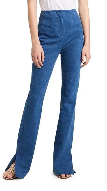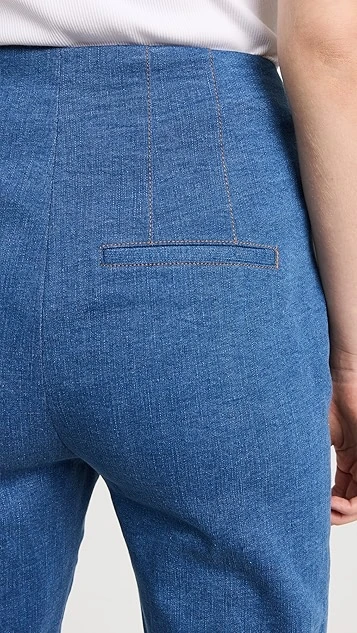 A unique denim collection addition with a throwback feel, these Veronica Beard jeans feature a pocket-free front for a sleeker look, and are finished with split, floor-skimming cuffs.