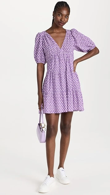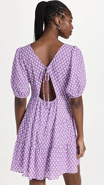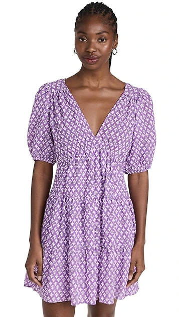 - V neckline and elbow-length puff sleeves with elastic cuffs