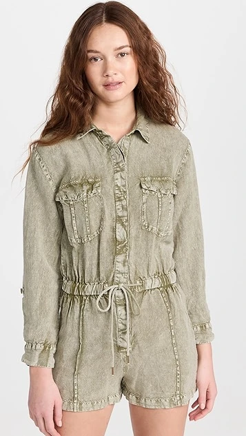 A cool one-and-done option for summer weather, this Young Fabulous & Broke romper stands out with heavily faded linen-blend fabric, and features a classic utilitarian design.